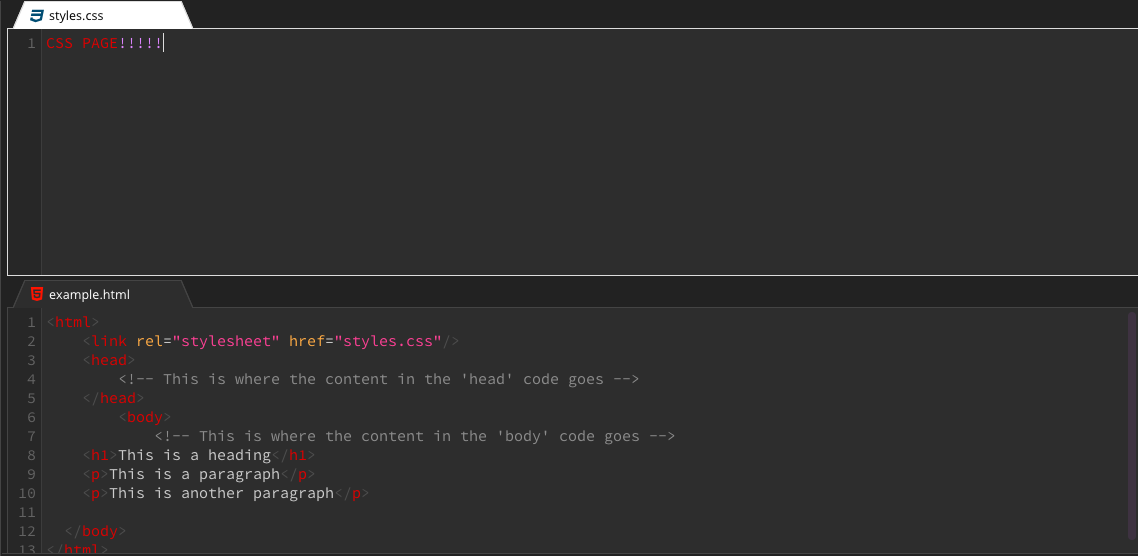 CSS is a way to show how things will be viewed on the page aesthetically. CSS can make your webpage look much neater and nice to look at. They can be found in three different places. They can be found in the <body> as in line CSS which is found as a attribute. They can also be coded in the HTML page in the <head> tag as normal CSS. Also, you can link up your HTML to your css to work together. This is the neatest way to do it. Simply make a file like HTML but instead end your file name as a .CSS file. Link your two files together by putting in <link rel="stylesheet" href="name of your .css file goes here"/> in your <head> tag. Well done! You've just created your CSS document!